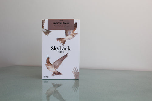 This one goes out to the Classic Coffee Drinkers. It's a warm-you-up diner mug-style coffee, but it's elevated and without any of the typical bitterness. Uncharacteristically for Skylark, there aren't any fruit notes in this one... pure chocolate, caramel, and nuts. It's currently a blend of our Brazil Futures and our Ethiopia Jimma Union. Sweet, nutty, and comforting to anyone looking for just a "normal cup of coffee."