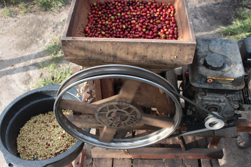 This coffee is a blend of these varietals: Abyssinia, Ateng, Caturra, Gayo, Timtim, and Typica. To create this lot, Kahpi selectively handpicked ripe, red cherry from his own farm along with some from neighboring farmers. He fermented the cherries for 24 hours, changing the water every 12 hours. After fermentation they were laid on patios to dry. Kahpi raked the cherry frequently to ensure even drying.