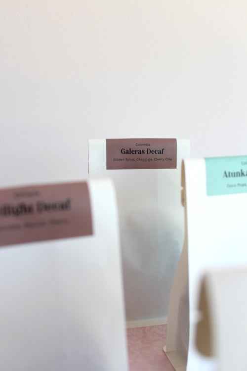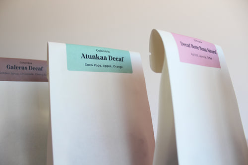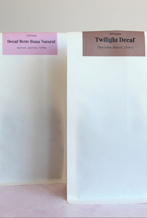 This sampler pack includes a half-bag (125g) each of our four delicious decaf coffees: Ethiopia Twilight, Colombia Galeras, Colombia Atunkaa, and Ethiopia Bette Buna Anaerobic Natural.