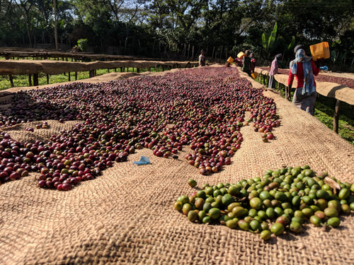 Our Murmuration blend is a perfect duet of coffees flying in unison to uplift the soul and spirit. Two coffees and two different processes, washed and natural, but both from Ethiopia. It's a blend as old as time in the specialty coffee world, but a classic for a reason. The washed coffee brings pleasant stone fruit acidity and some floral notes, while the natural brings body and sweetness to the blend.